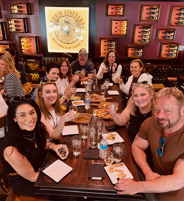 We are currently offering a private Wine Walkabout tour for groups of 8 or more guests. The tour visits three tasting rooms in Old Town Scottsdale and is about 2.5 hours in length.